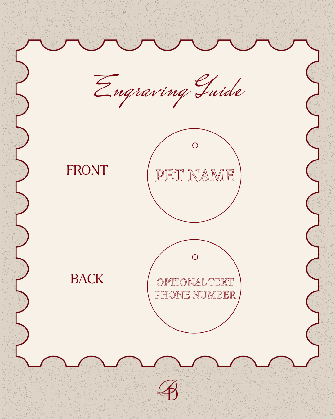 - Tags are made in China and engraved in the USA