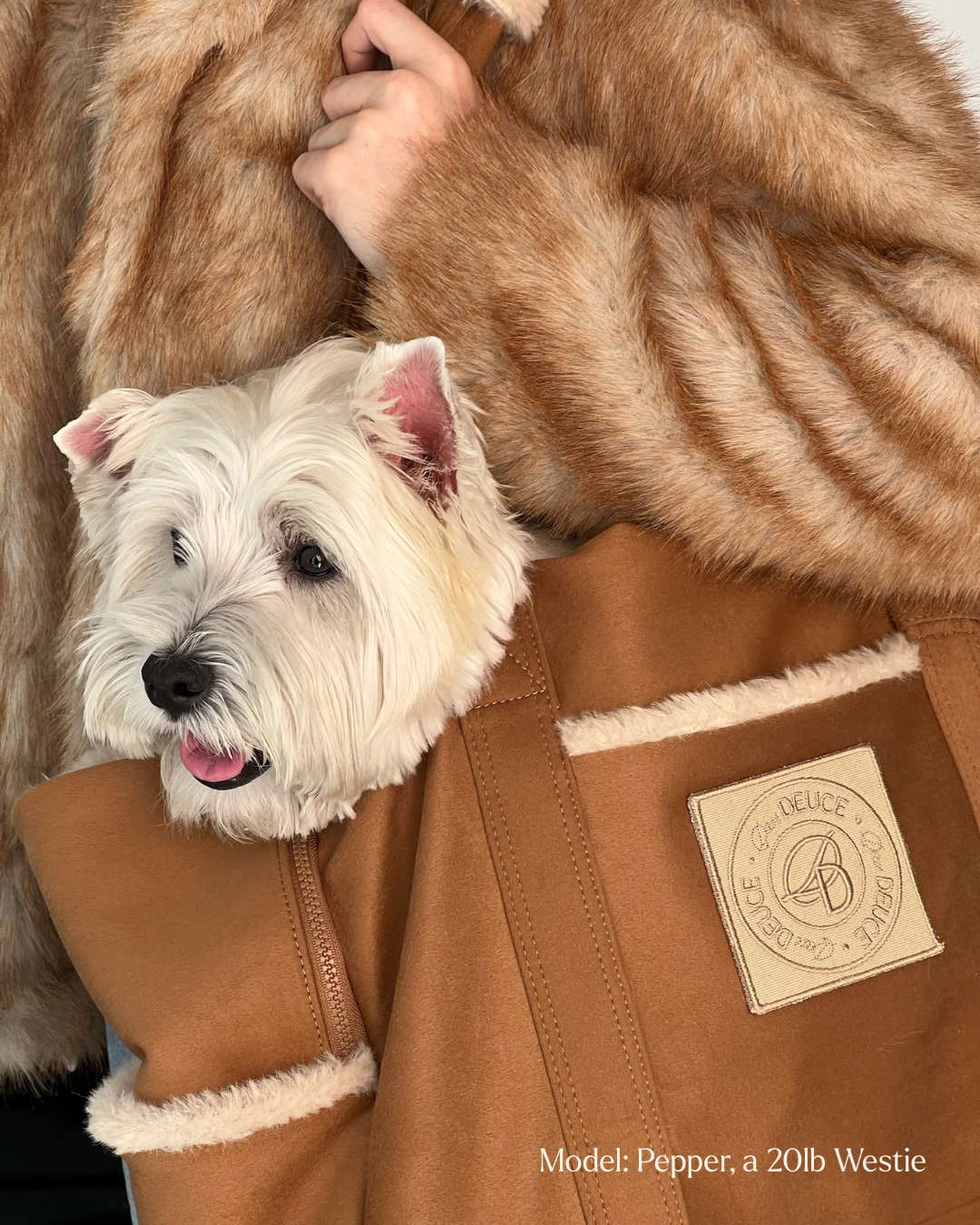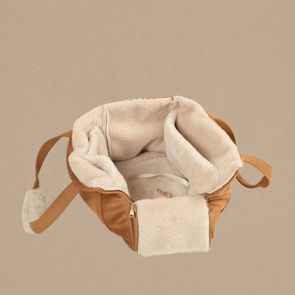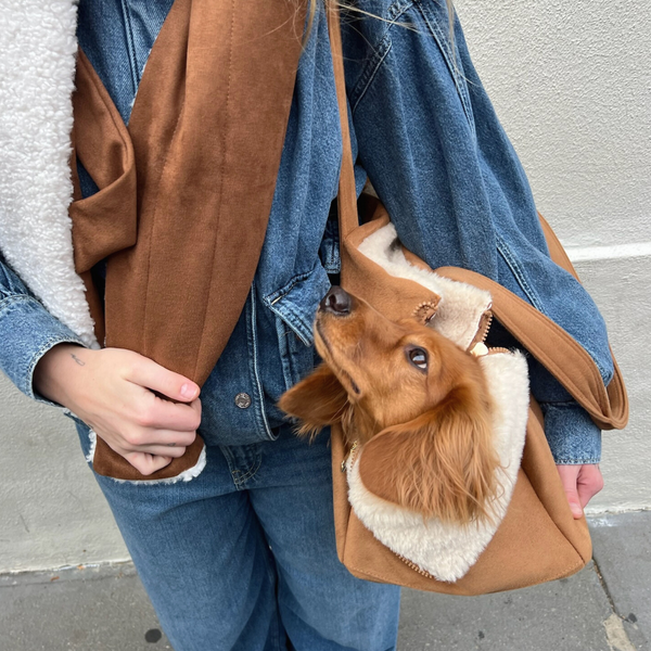 Our carrier tote redefines how your dog travels through the cold. Structured yet soft for unmatched comfort, with a laptop sleeve and smart pockets designed for your day and perfected for your dog.