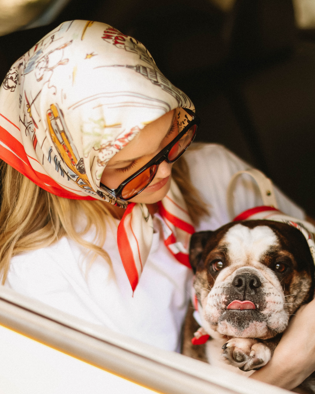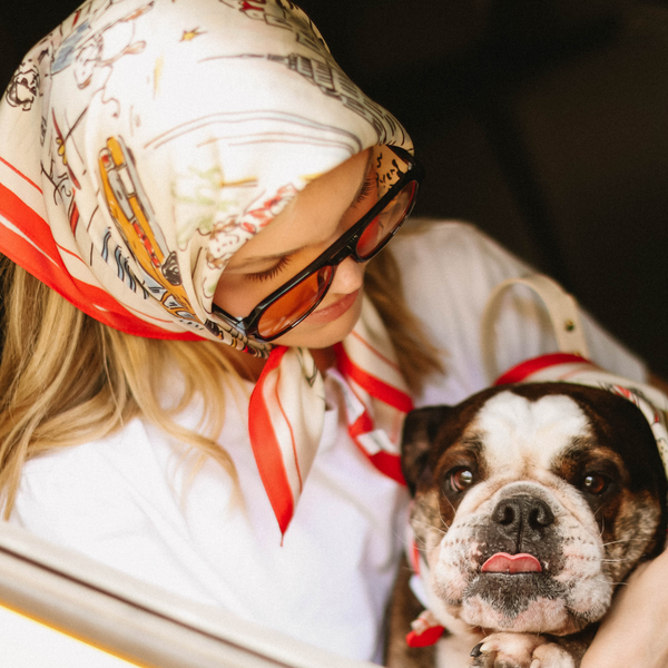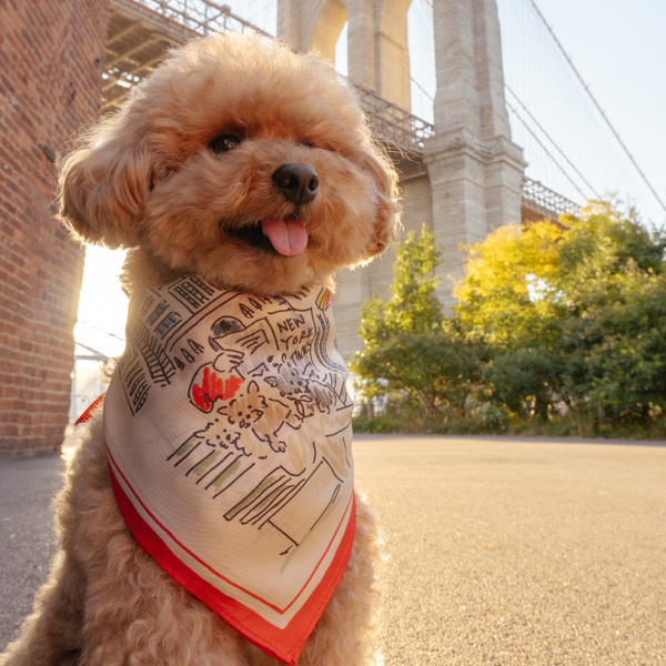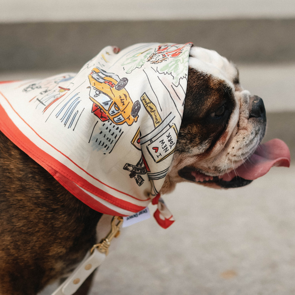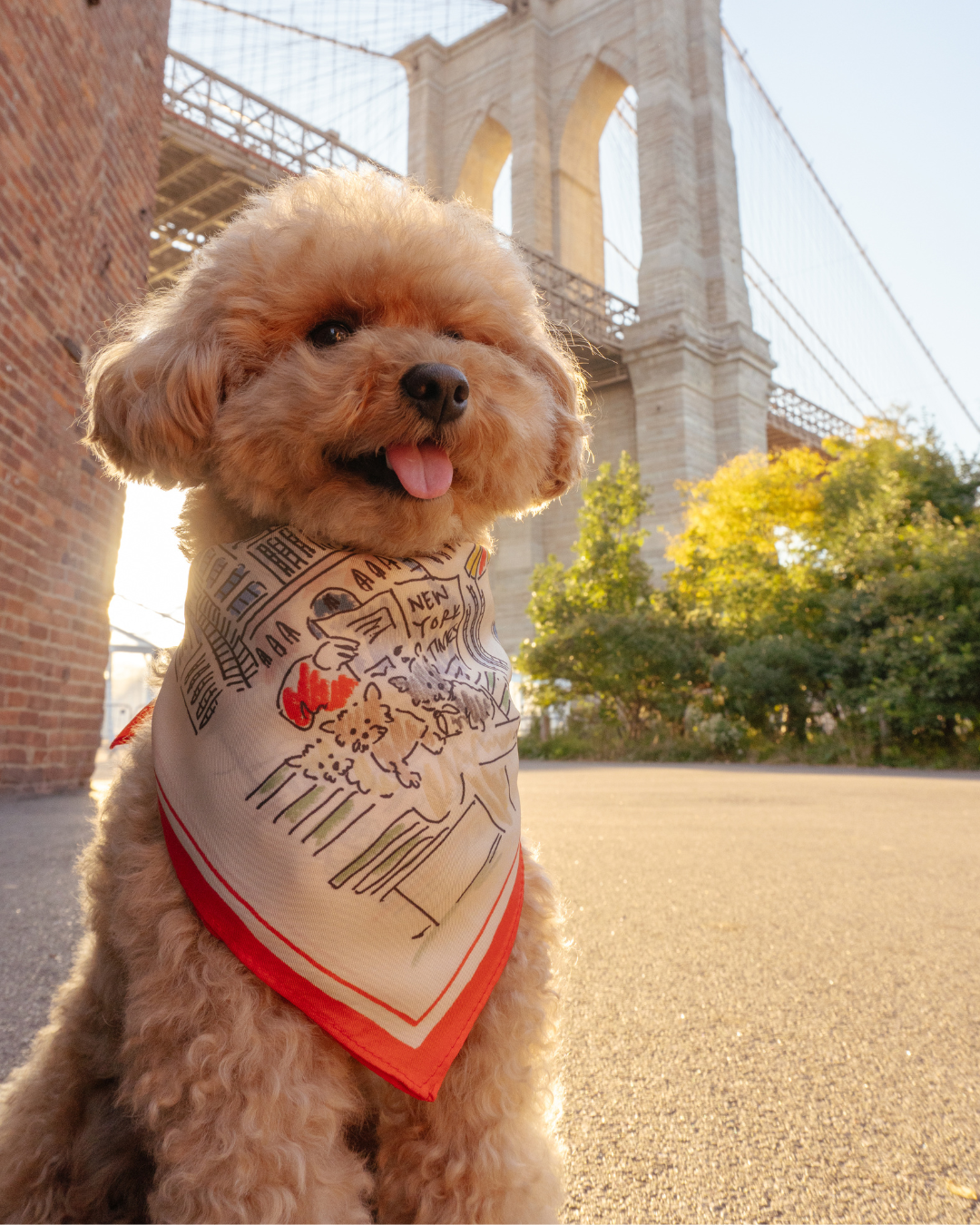 Illustrated by Noun New York, our silk scarf combines timeless architectural icons, classic city motifs like yellow taxi, storied street signs, and the ever-charming presence of city dogs. Subtle nods to the New York Times and other cultural touchstones lend a sense of heritage, while the composition captures the elegance and energy of a city in motion.